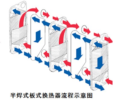 半焊式板式換熱器是一種用兩張板片沿密封槽采用激光焊焊接成板片,把板片對用密封墊密封,以疊加的形式夾裝在固定壓緊板、活動壓緊板中間的換熱器。